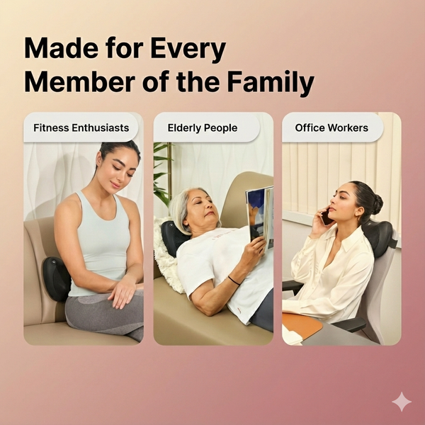 “Everyone in the family deserves relief—our multi-use pillow massager makes it easy.”